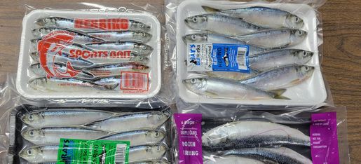 Frozen Bait ( We do Our Best to keep all of these in stock Year Round) *You can Get the Wholesale Price of $8.50/Tray if you buy 30 Trays or More or the case Quantities on our website of the Frozen Herring (Mix and Match any of the 7 Sizes)! Call us to Order these and we can get you a shipping estimate! We Ship Nationwide! 406-855-8469 - Cindy